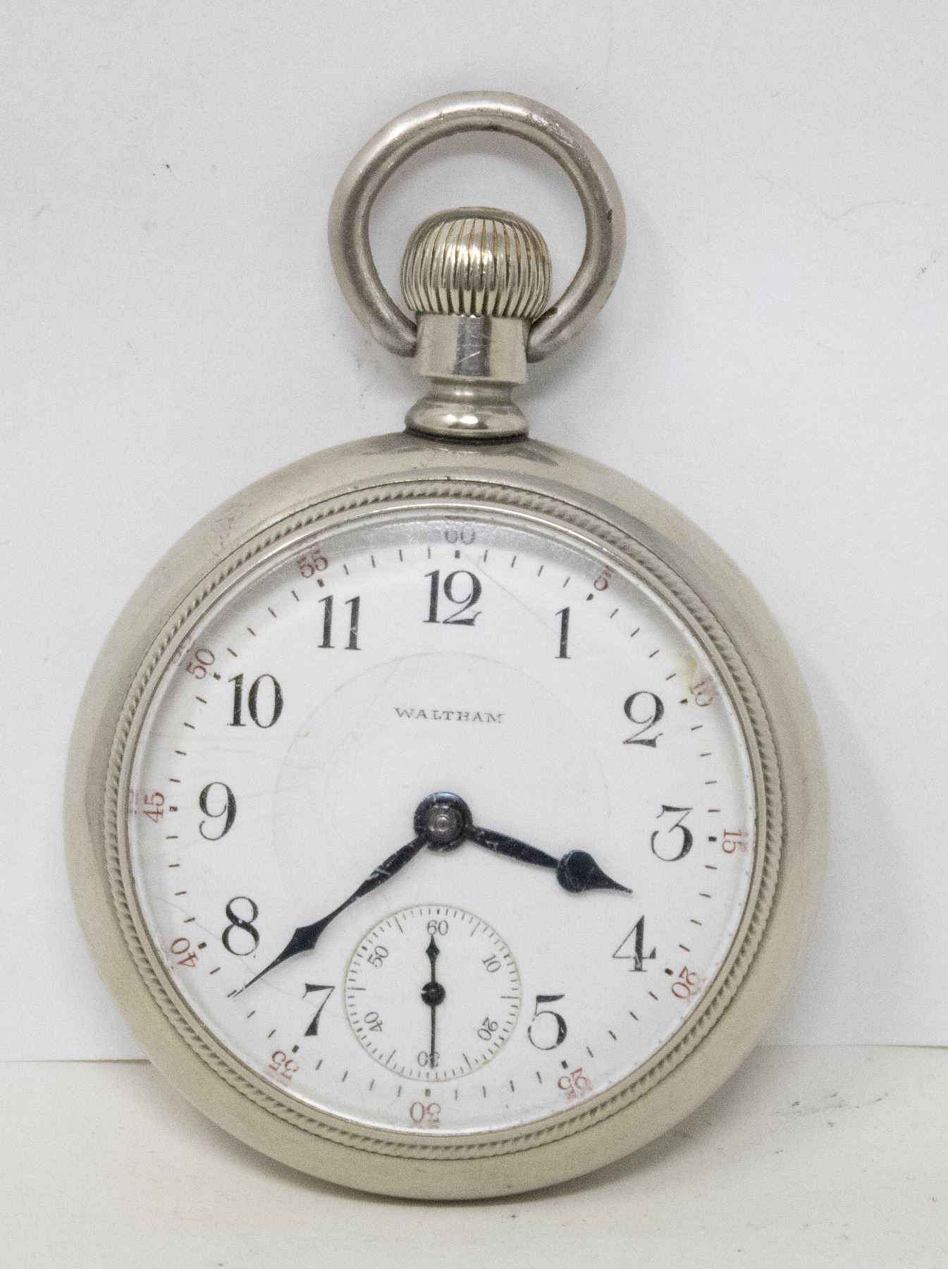 1910 WALTHAM 17J SILVER CASE POCKET WATCH WORKS
