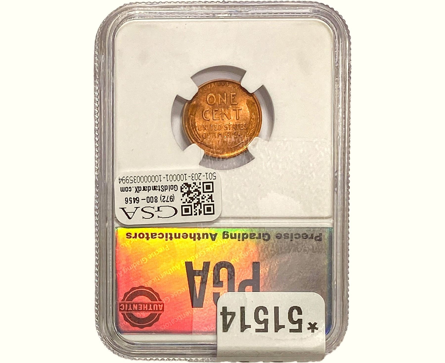 l. All non-certified coins and currency are guaranteed genuine, but are not guaranteed as to grade, since grading is a matter of opinion, an art and not a science, and therefore the description rendered by GSA or any third-party grading service may not agree with the opinion of others (including trained experts), and the same expert may not grade the same item with the same grade at two different times. GSA may, but is not obligated to, express an opinion as to non-certified numismatic items, in GSA’s opinion, or by its employees’ experience and the current interpretation of the American Numismatic Association’s standards as of the date the catalog was prepared. There is no guarantee or warranty expressed or implied that the grading opinions utilized by GSA, if any, will meet the standards of any grading service at any time in the future.