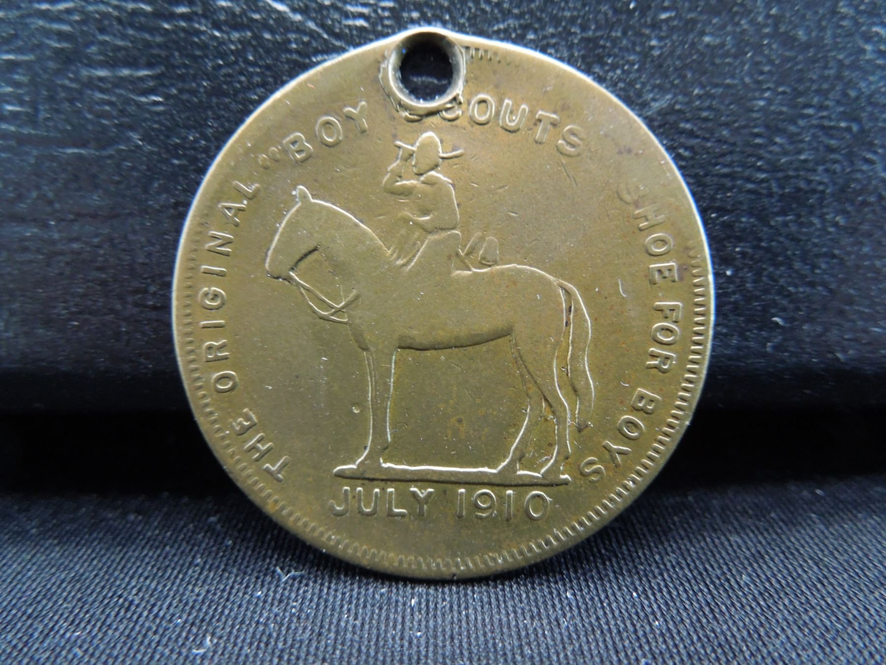 1910 advertising piece for excelsior shoes for boys with a good luck swastika on the reverse