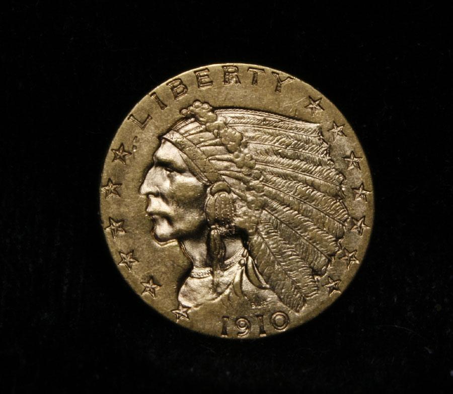 Nice Lustrous example with Superior eye appeal. The $2 1/2 and $5 Indian are the first incuse designed coins since ancient times. This is a great example of the 1910-p. Coin World's Coin Values lists ms64 at $3250 and The Wholesale Greysheet lists ms64 at $2750. Estimated Value $2750