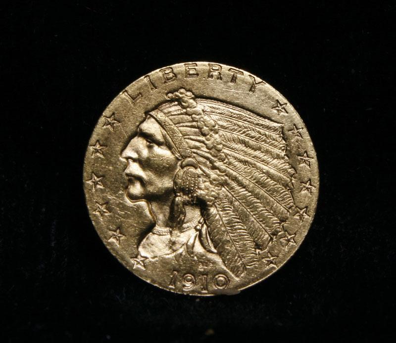 Nice Lustrous example with Superior eye appeal. The $2 1/2 and $5 Indian are the first incuse designed coins since ancient times. This is a great example of the 1910-p. Coin World's Coin Values lists ms64 at $3250 and The Wholesale Greysheet lists ms64 at $2750. Estimated Value $2750