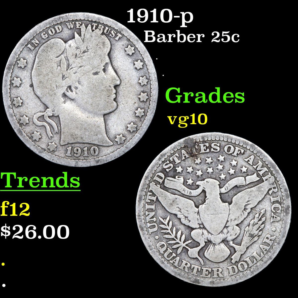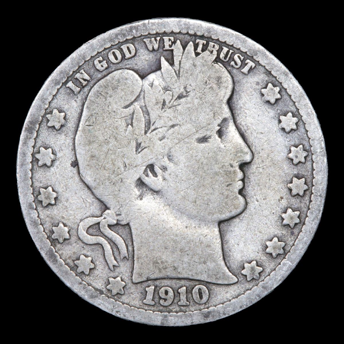 1910-p . . Barber Quarter 25c Grades vg+.