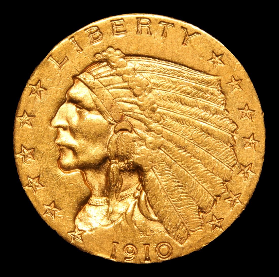 1910-p Gold Indian Quarter Eagle $2 1/2 Grades Choice AU/BU Slider.