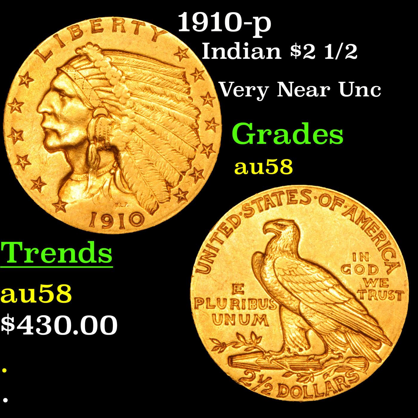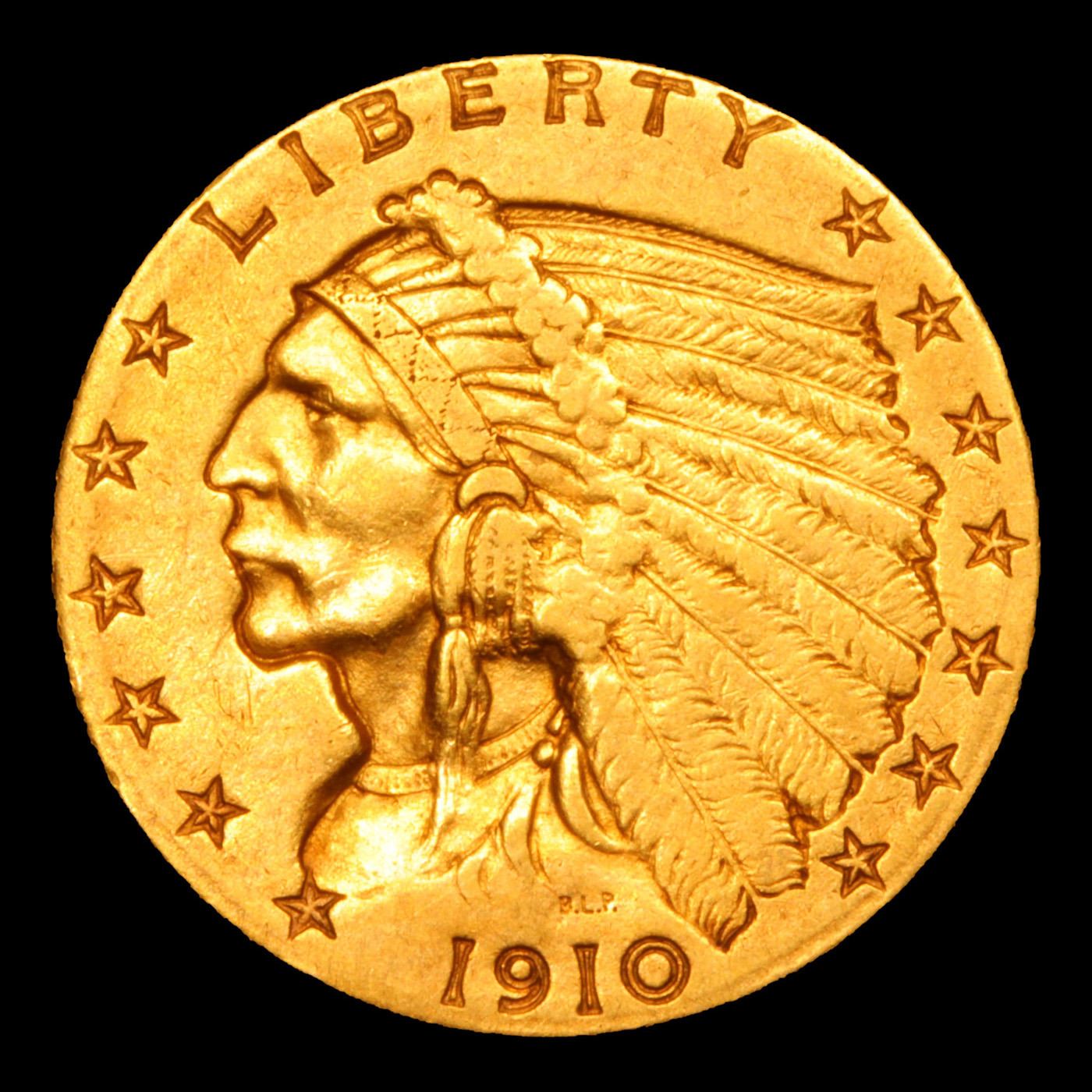 1910-p Gold Indian Quarter Eagle $2 1/2 Grades Choice AU/BU Slider.