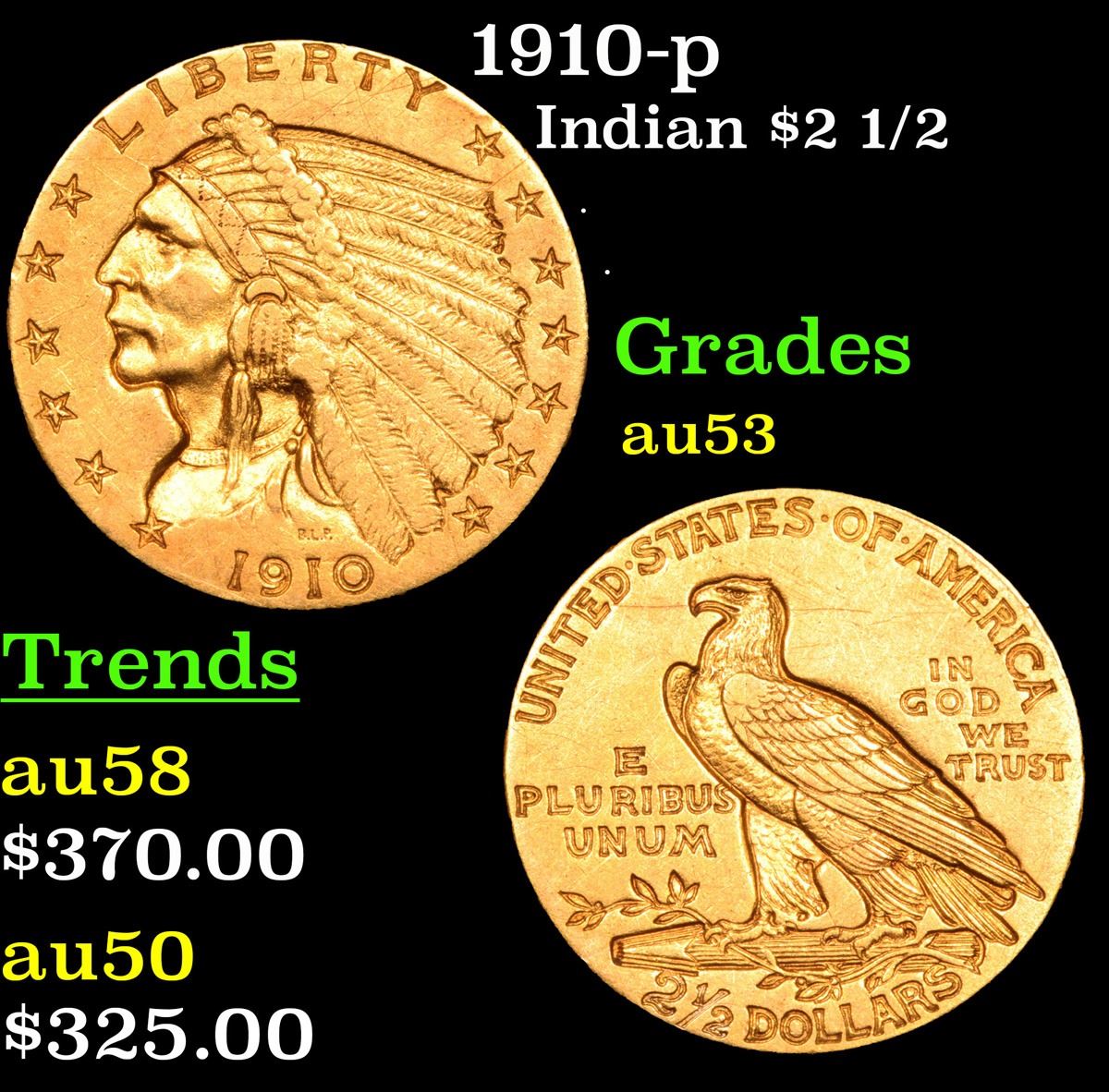 1910-p . . Gold Indian Quarter Eagle $2 1/2 Grades Select AU.