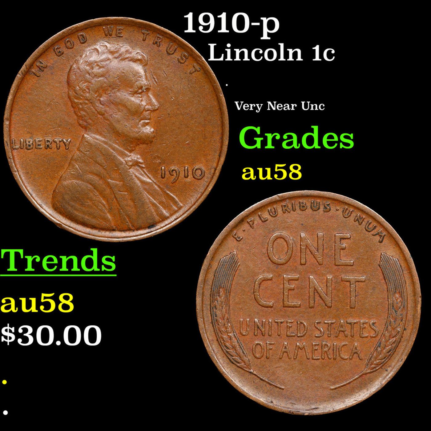 1910-p Lincoln Cent 1c Grades Choice AU/BU Slider.