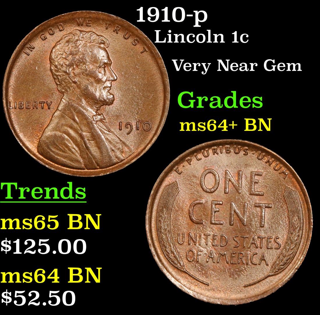 1910-p . Very Near Gem Lincoln Cent 1c Grades Choice+ Unc BN.