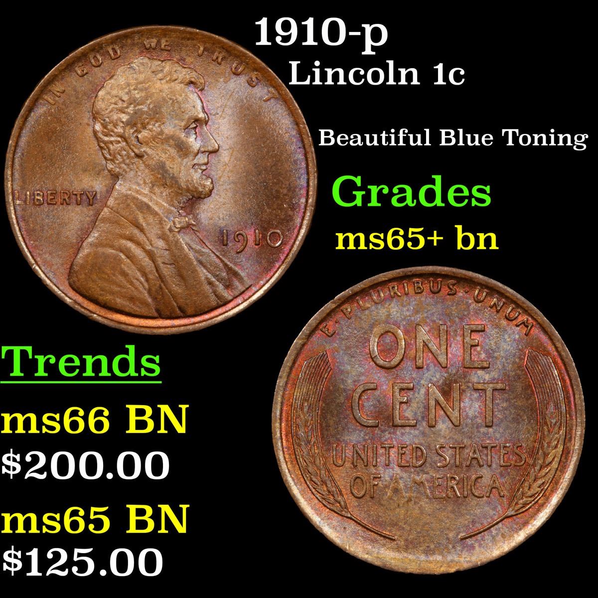 1910-p Lincoln Cent 1c Grades GEM+ Unc BN.