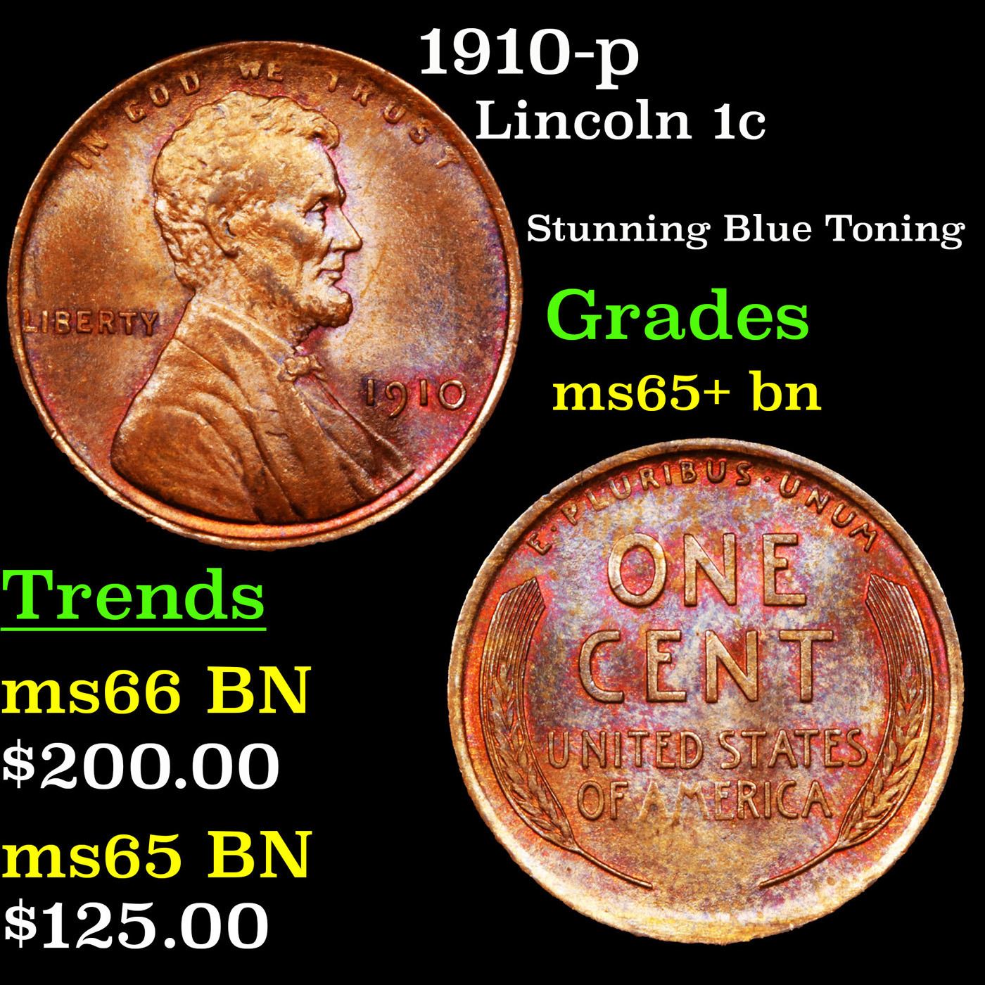 1910-p Lincoln Cent 1c Grades GEM+ Unc BN.