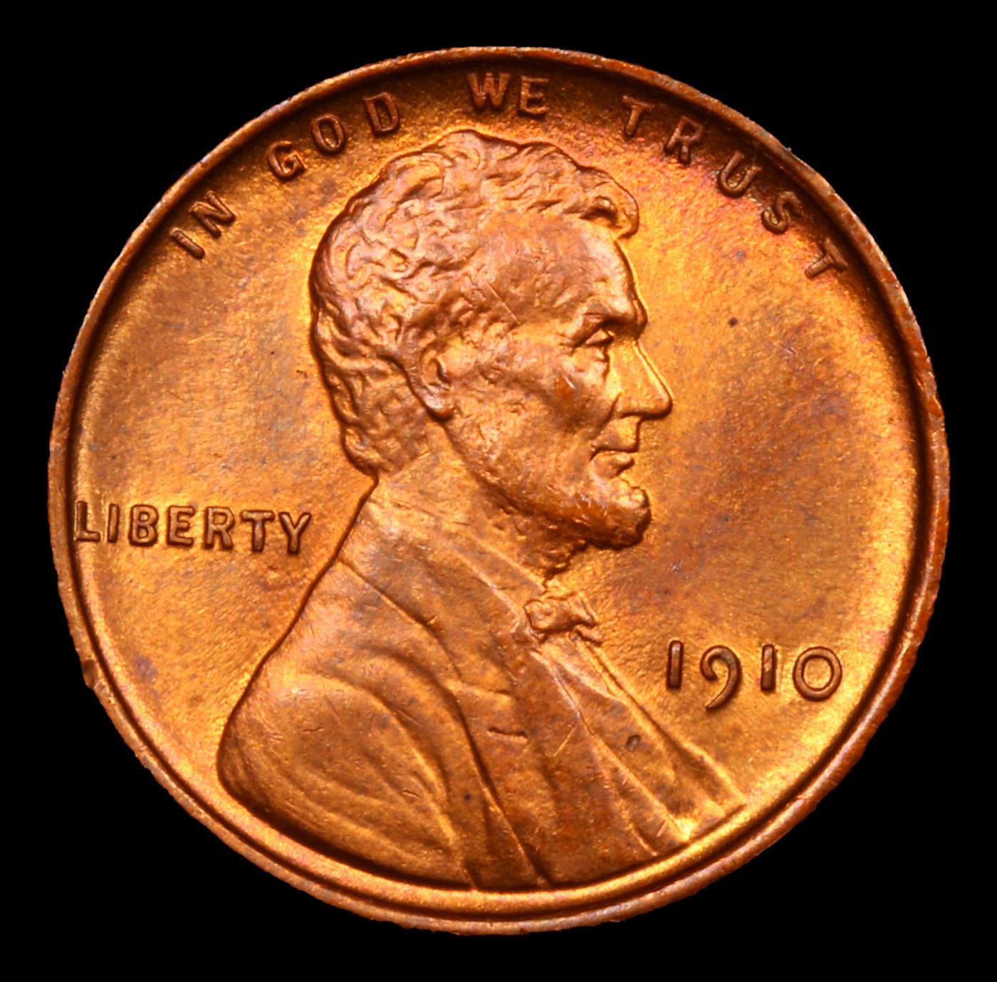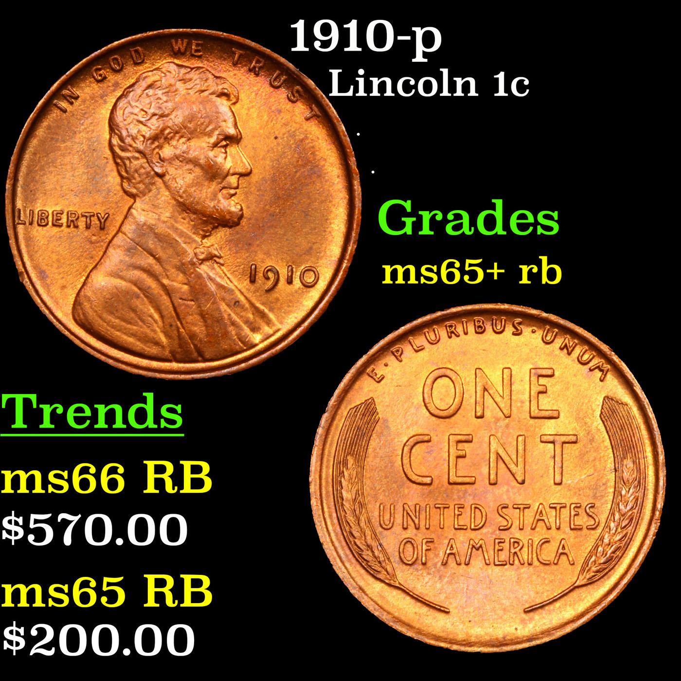 1910-p Lincoln Cent 1c Grades Gem+ Unc RB.