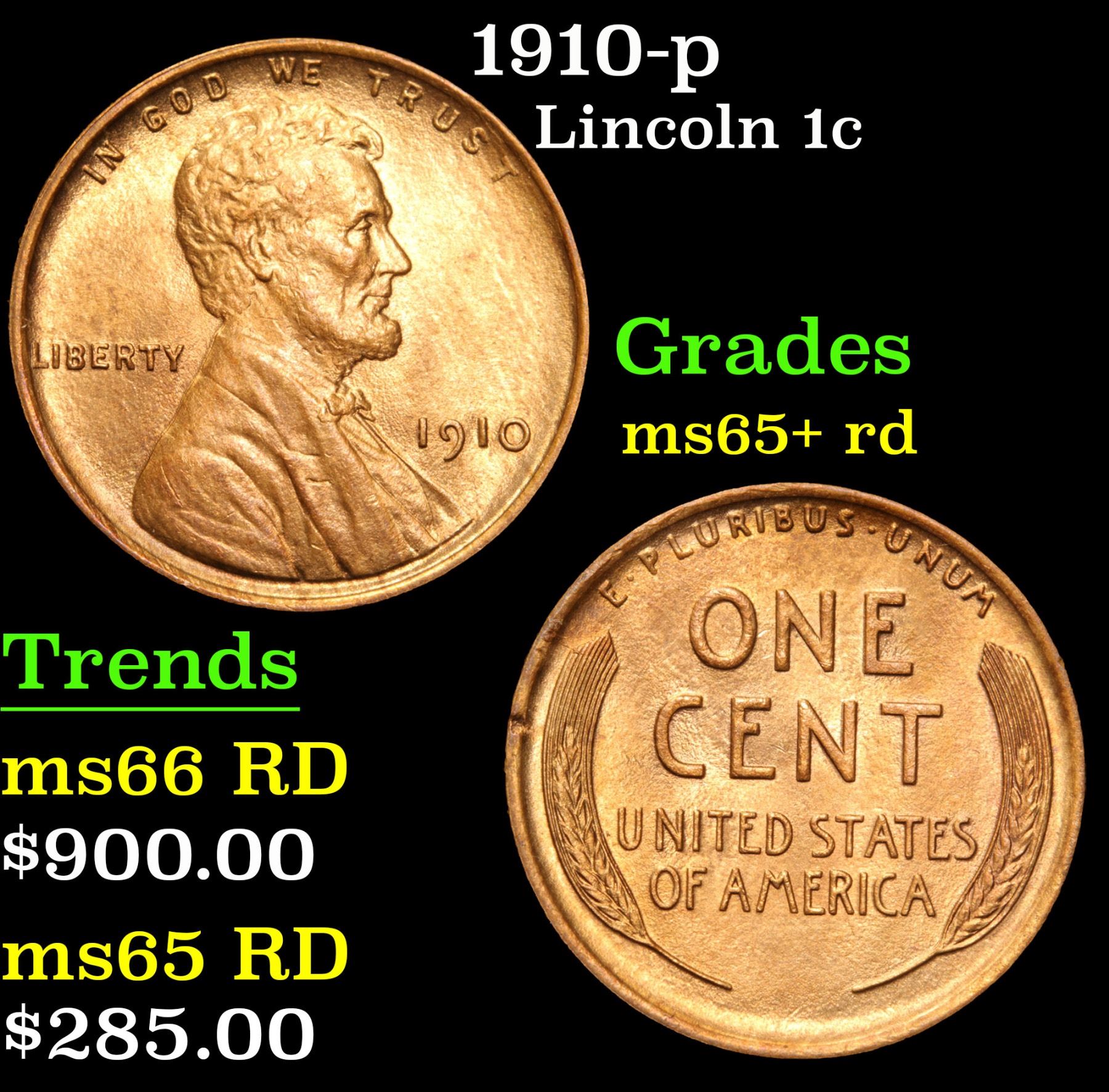 1910-p . . Lincoln Cent 1c Grades Gem+ Unc RD.