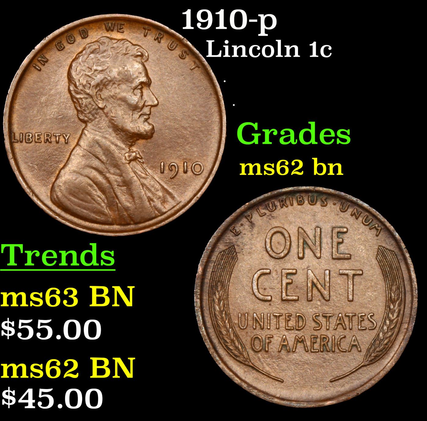 1910-p Lincoln Cent 1c Grades Select Unc BN.