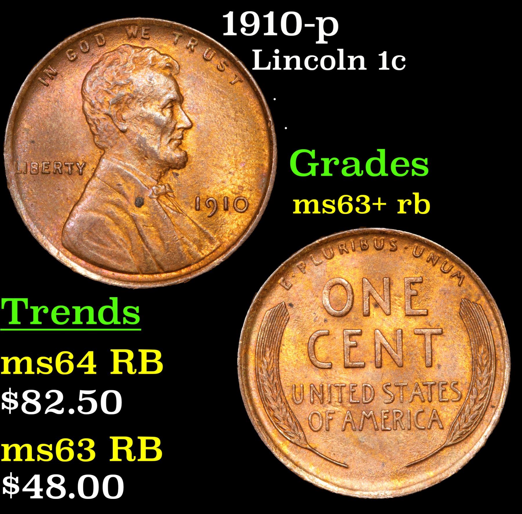 1910-p . . Lincoln Cent 1c Grades Select+ Unc RB.