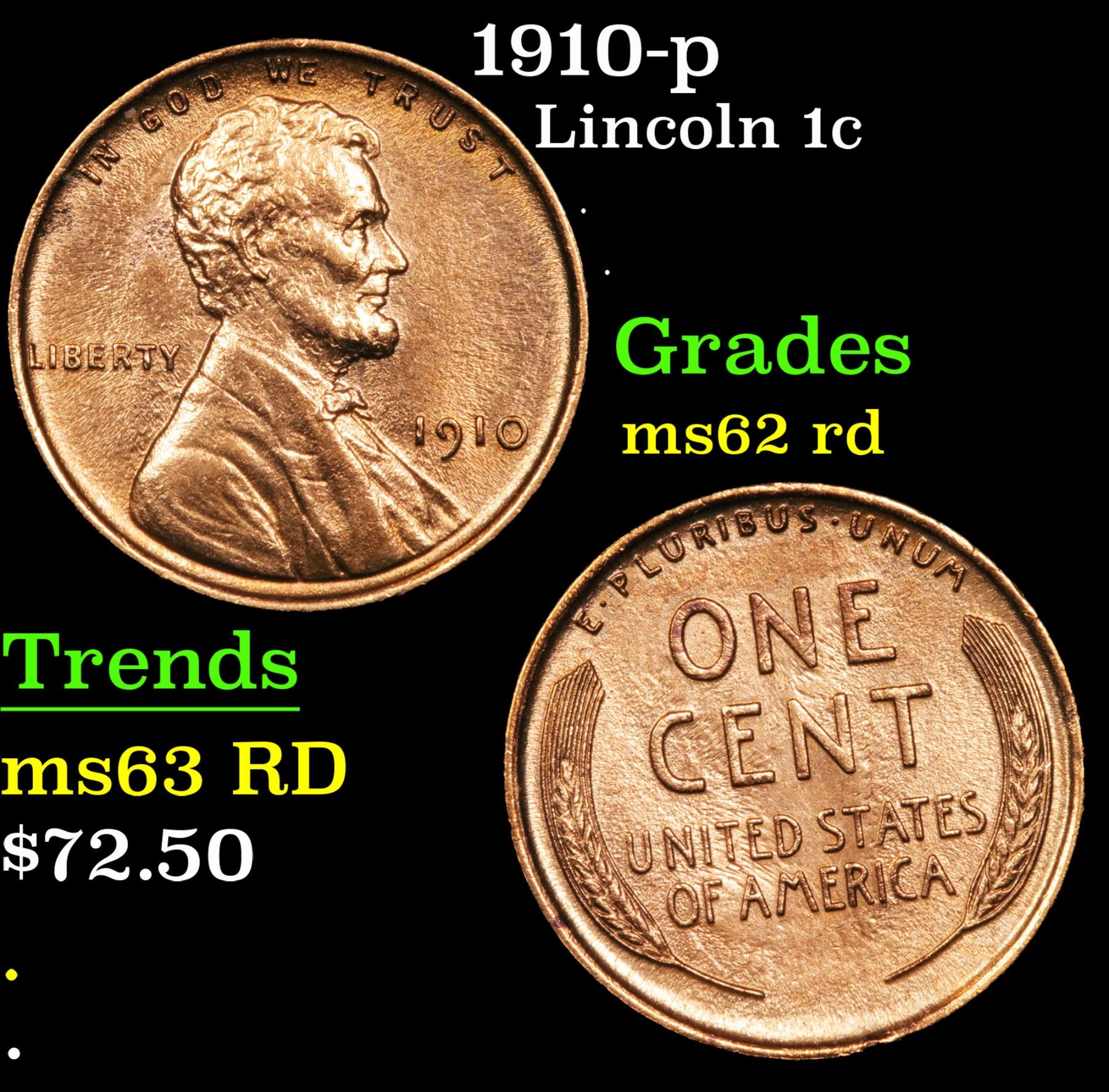 1910-p . . Lincoln Cent 1c Grades Select Unc RD.