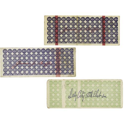 <B>1910's Ad Wolgast Fight Tickets Lot of 3.</B></I> Ad Wolgast, The Michigan Wildcat, fought between 1906 and 1920. During his career he won the World Lightweight Title and posted career victories over Battling Nelson, Joe Rivers, One Round Hogan and Frankie Burns. A member of the Boxing Hall Of Fame and one of the most significant fighters of his era, Wolgast was known for his toughness as much as his talent. Offered here are three full tickets featuring Ad Wolgast. Two are from his July 4, 1911 bout with Owen Moran in which Wolgast successfully defended his title stopping Mora in the thirteenth round. Both tickets are full with stubs firmly attached. Both have clean fronts and backs with no creasing. The third ticket is from his fight with Willie Ritchie on November 28, 1912 in which Wolgast lost his title on a foul in the sixteenth round. The ticket is full and in excellent condition with clean front and back and no creasing. All exhibit some minor edge and corner wear. <I>LOA from Craig Hamilton / JO Sports.</B></I>