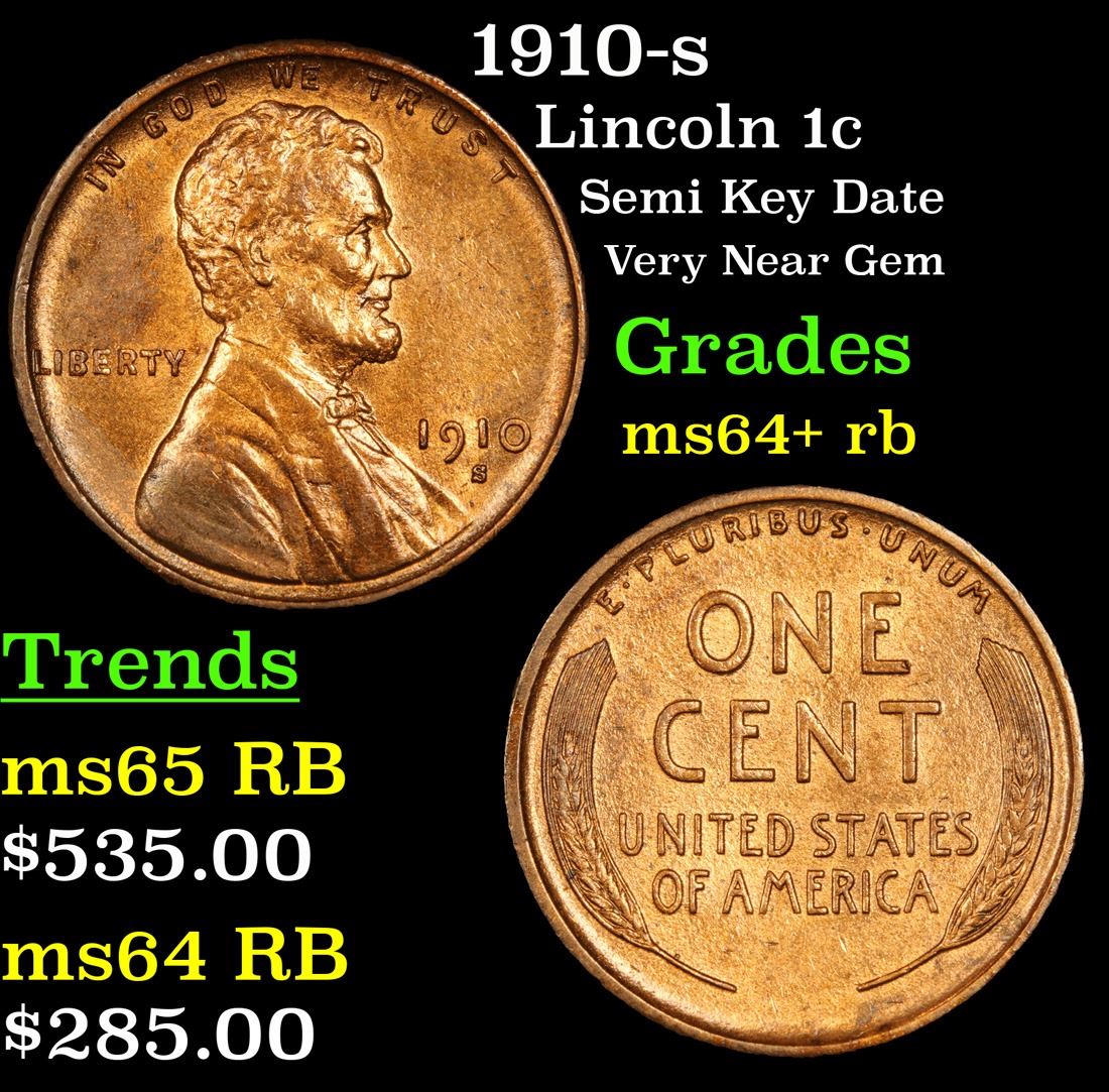 1910-s Semi Key Date Very Near Gem Lincoln Cent 1c Grades Choice+ Unc RB. Semi Key Date. Per David Hall of PCGS "The 1910-s has long been considered a semi-key date in circulated grades"