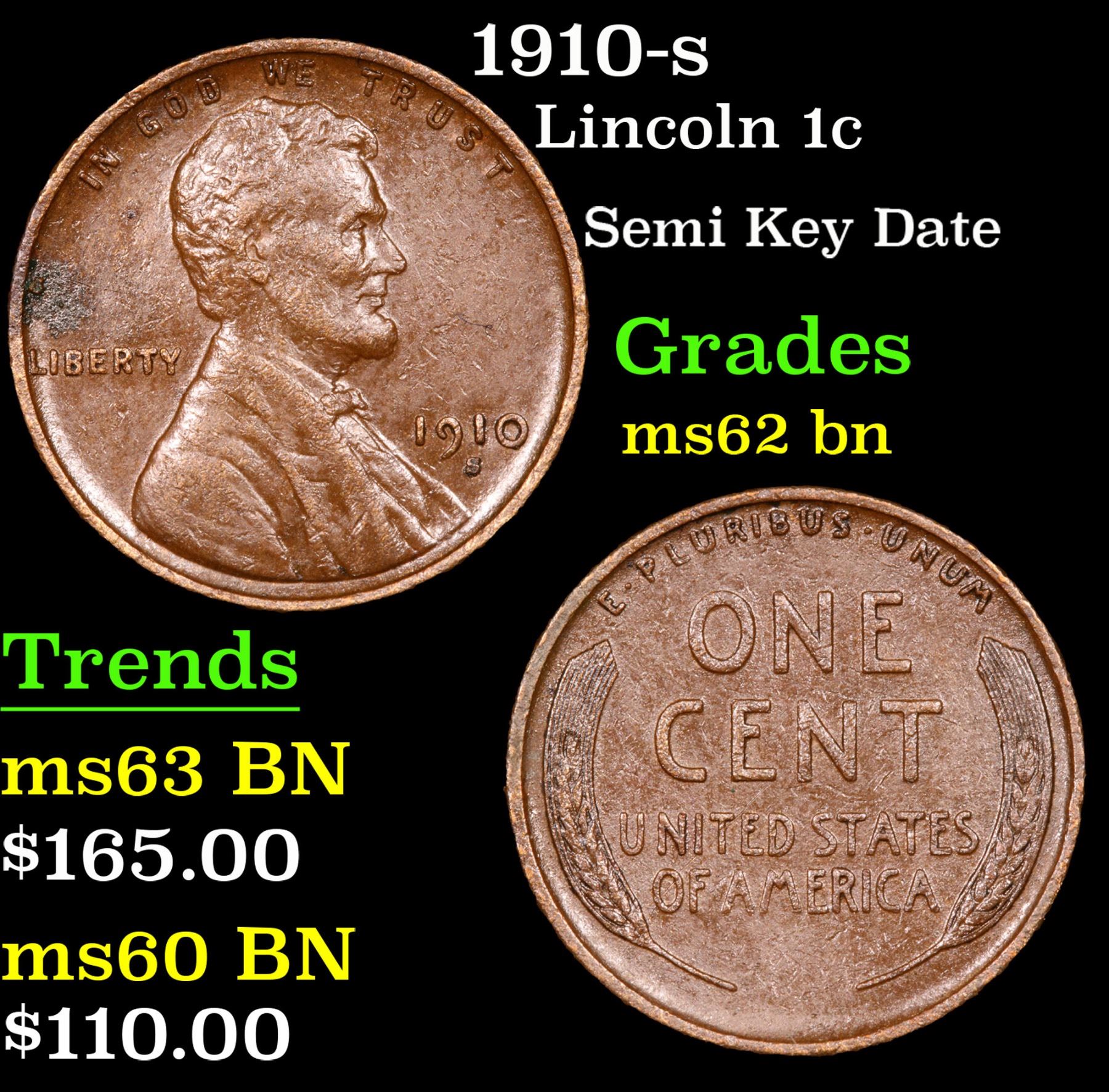 1910-s Semi Key Date . Lincoln Cent 1c Grades Select Unc BN.  Semi Key Date.  Per David Hall of PCGS "The 1910-s has long been considered a semi-key date in circulated grades"