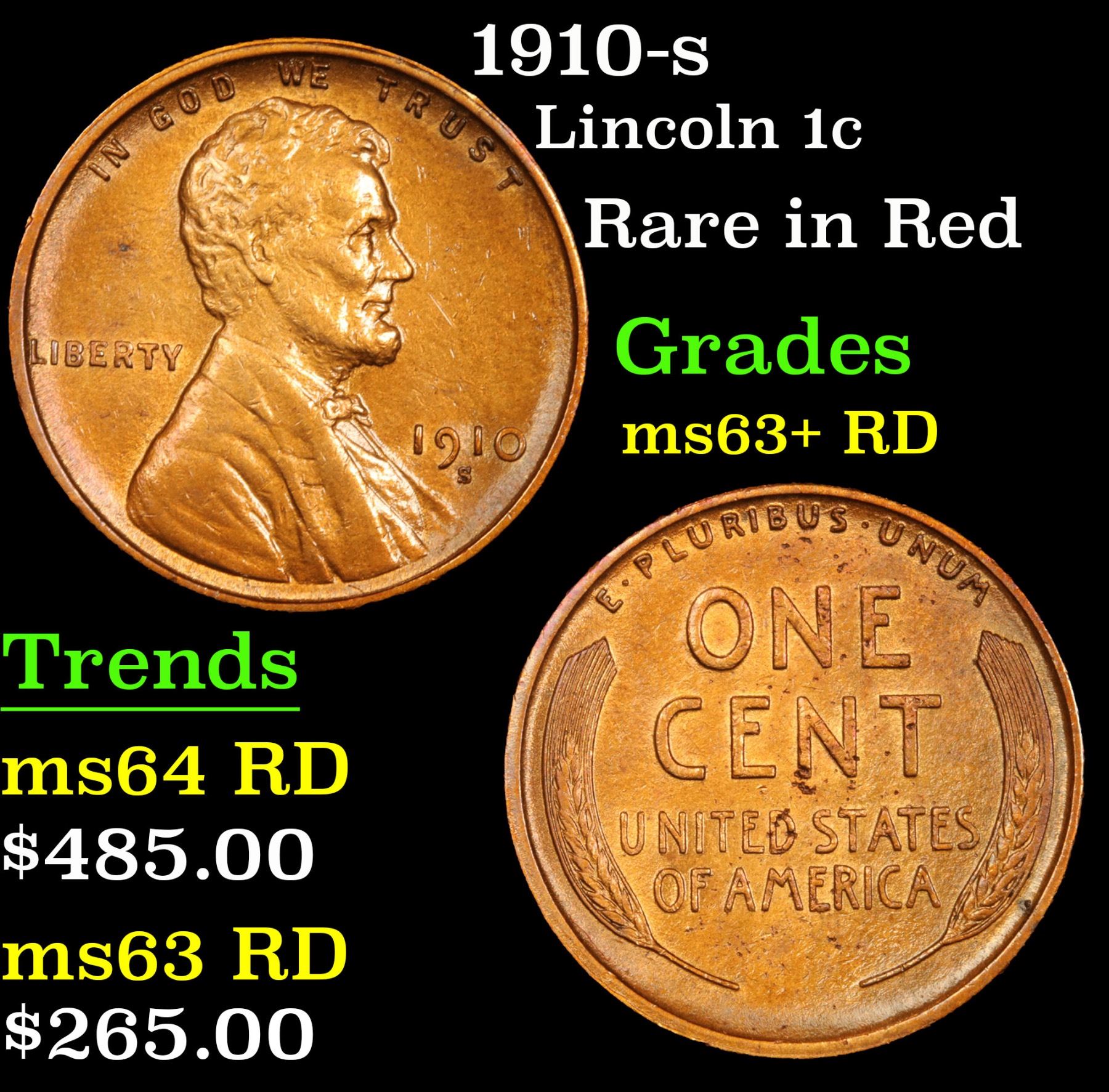 1910-s Lincoln Cent 1c Grades Select+ Unc RD. Semi Key Date. Per David Hall of PCGS "The 1910-s has long been considered a semi-key date in circulated grades" Rare in Red A Corey's Pick, Bid to Win, Don't let it get Away Coin