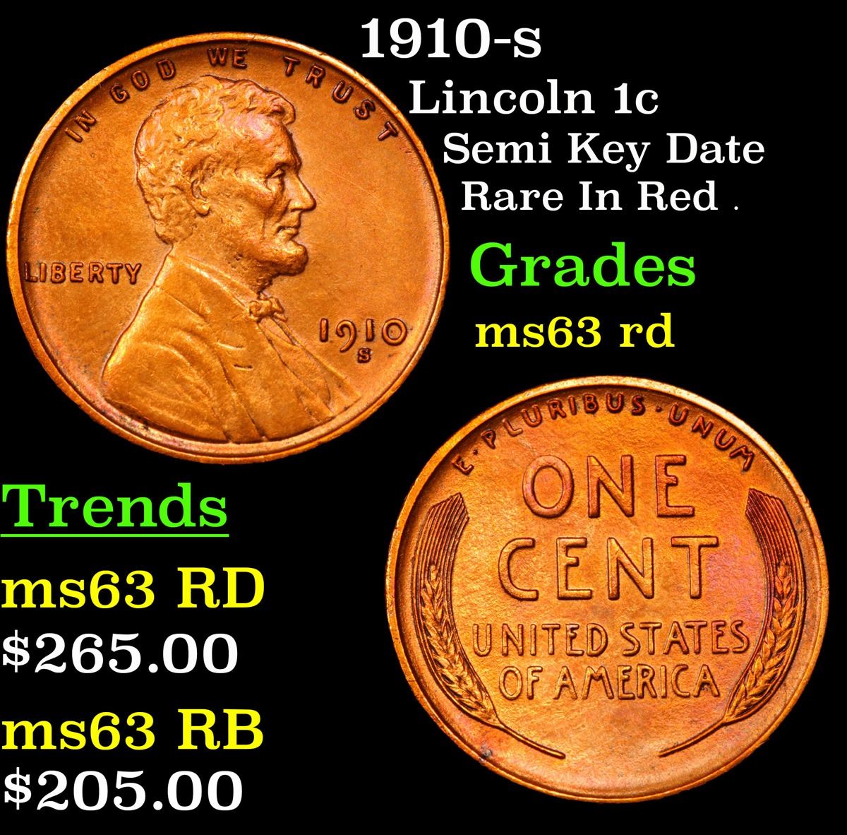 1910-s Lincoln Cent 1c Grades Select Unc RD. Semi Key Date. Per David Hall of PCGS "The 1910-s has long been considered a semi-key date in circulated grades"