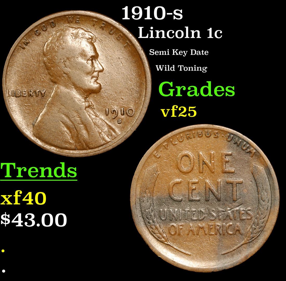 1910-s Semi Key Date Wild Toning Lincoln Cent 1c Grades vf+. Semi Key Date. Per David Hall of PCGS "The 1910-s has long been considered a semi-key date in circulated grades"