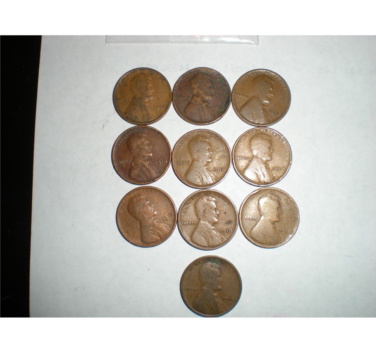 1910 wheat pennies x10***Coin, Currency, Gemstones & All Items Listed in this auction along with their respective Grades, Conditions and Values are not T&T Auctions Responsibility. Every person has their own opinion. It is the responsibility of the buyer to examine, grade and value each item in this auction to their own satisfaction before they bid. Bidders shall rely entirely on their own inspection and information before bidding.