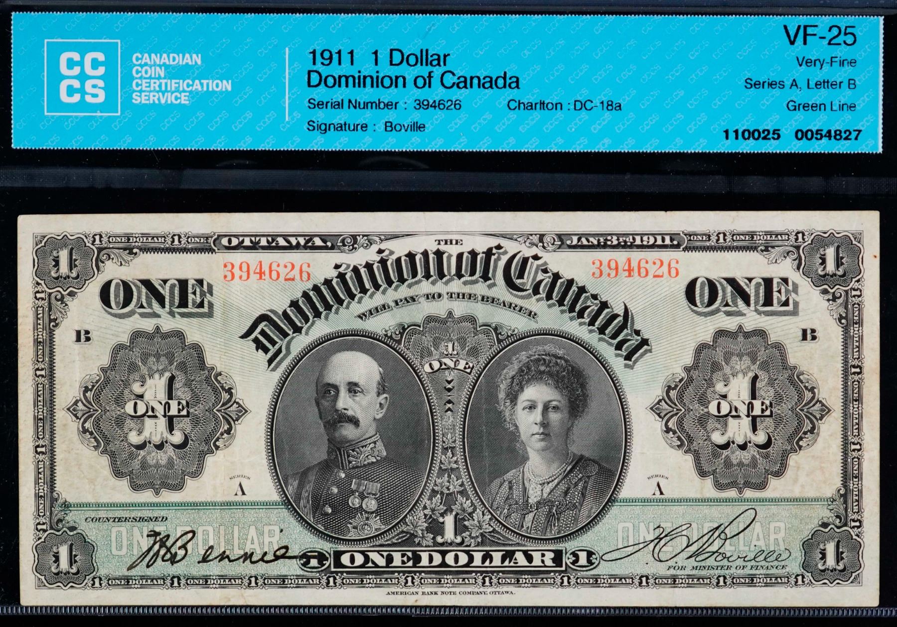 1911 $1 DC-18a #394626 "Green Lines" CCCS Choice Very Fine-25