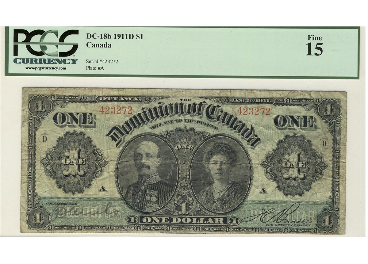 1911 $1 DC-18b #423272 PCGS F15. A problem free example.