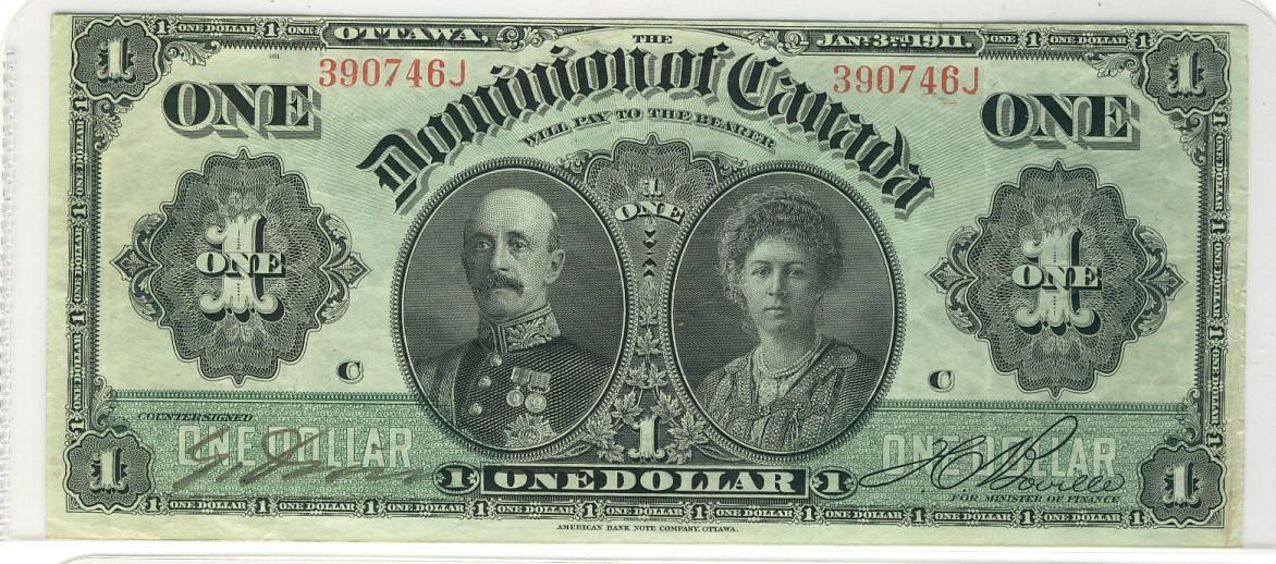 1911 $1 DC-18c #390746J. A solid VF with a couple pinholes.