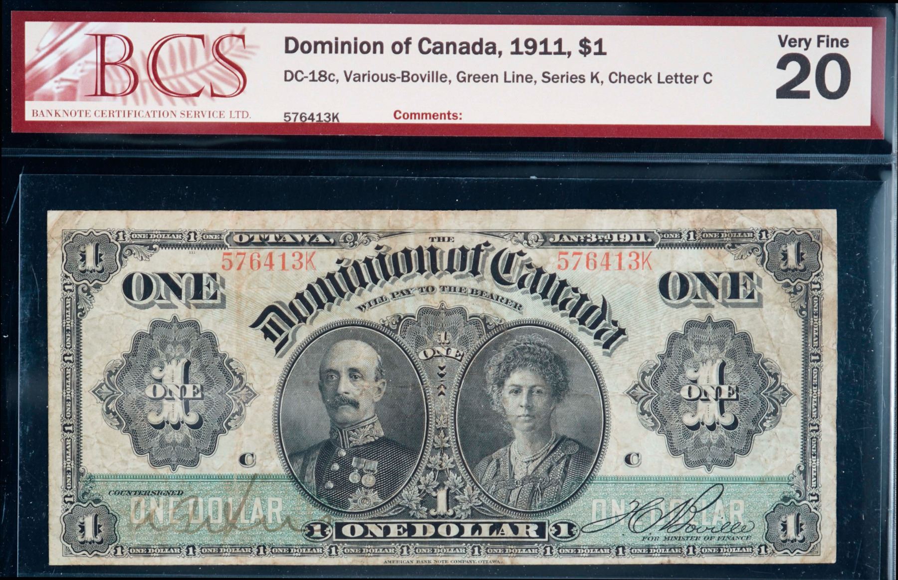 1911 $1 DC-18c #576413K BCS Very Fine-20.