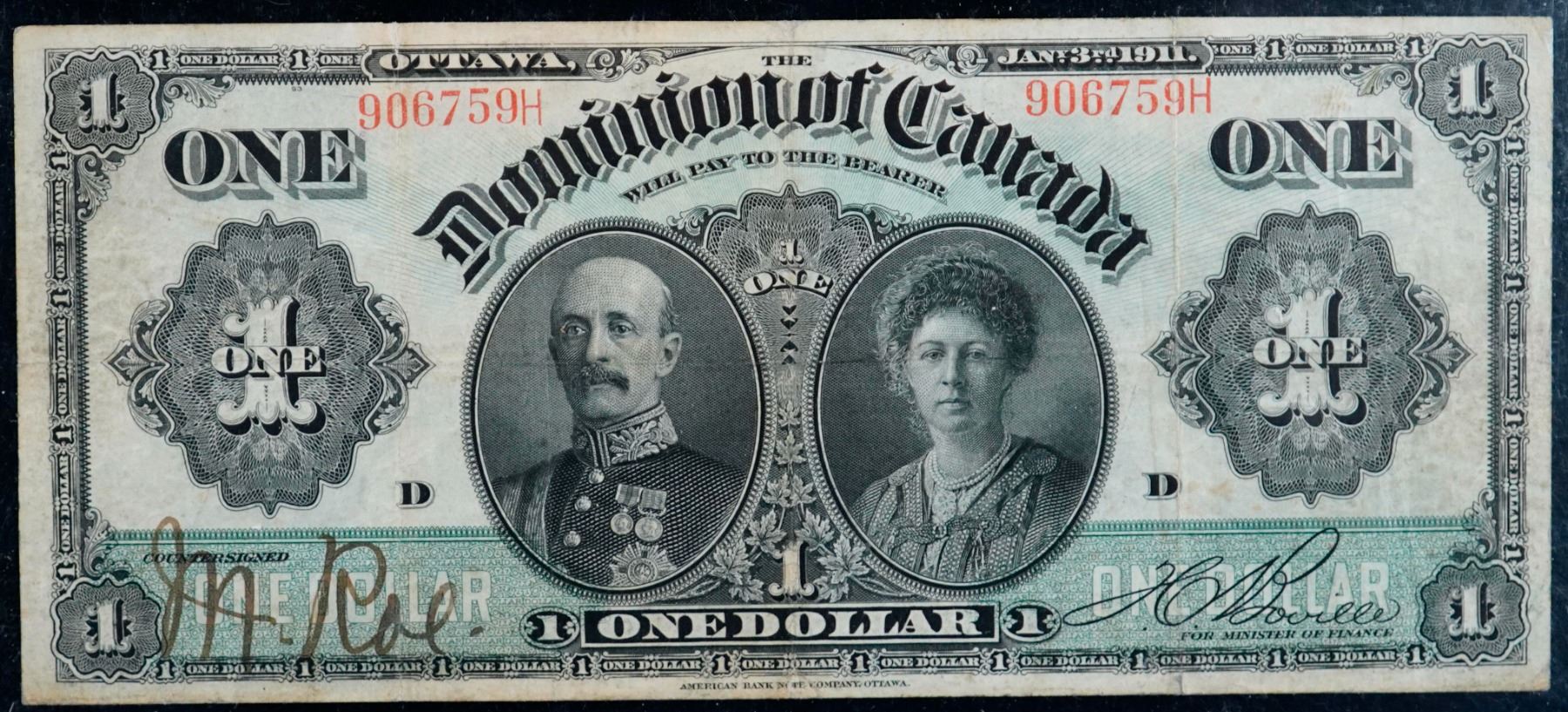 1911 $1 DC-18c #906759H BCS Choice Very Fine-25 with issues.