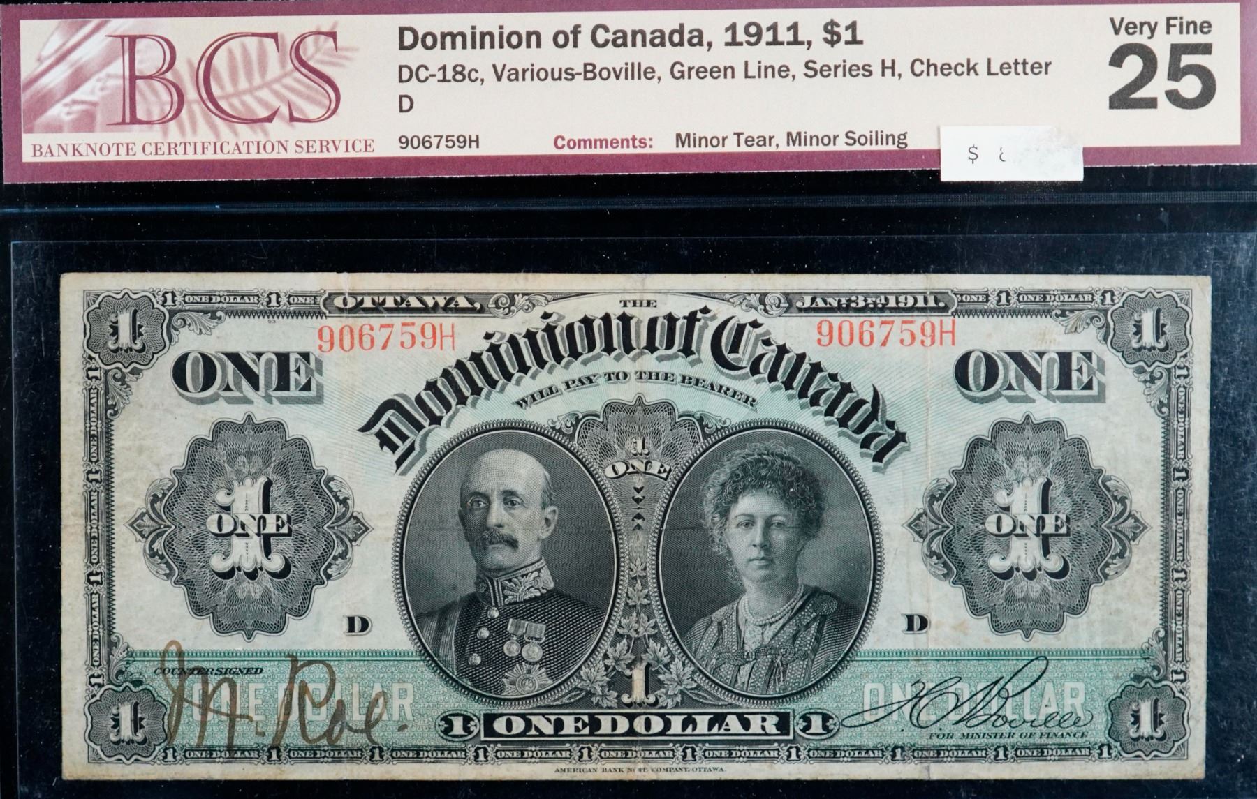 The cataloguer has taken every reasonable measure to ensure that all of the lots in this sale are as described and genuine. All raw coins and banknotes have been graded by the cataloger or the auction house which represent our best professional opinion. To grade coins and banknotes, we use Canadian grading standards, 42 years of experience and good conscience. However, grading is a subjective description in the opinion of the cataloger or the auction house. Among experts there are often differences of opinion on the grading and the eye appeal of a coin. The strike and the state of preservation are often debated. The Canadian Numismatic Company acts as an agent between consignors and buyers. The Canadian Numismatic Company does not guarantee that any coin or banknote cataloged will meet the standards, or the grade, of any third party grading companies. No warranty, whether impressed or implied. Items are as is, no warranty given. We cannot accept responsibility and waive all liability resulting in financial losses, and or incidentals accruing from the sale of any items, nor can we guarantee that items graded by third party services will grade the same if submitted to a different grading service or re-submitted to the same company. Statements by The Canadian Numismatic Company regarding the condition, the eye appeal, the strike and the population of items are for guidance only. All lots offered are sold "AS IS". Title to all lots remains with the auction house until paid for in full by the purchaser. But they are held at the risk of the purchaser once the time of the sale.