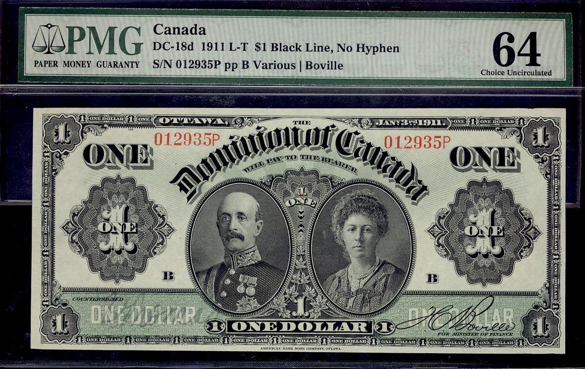 1911 $1 DC-18d #012935P PMG CH UNC64. A lovely and choice example