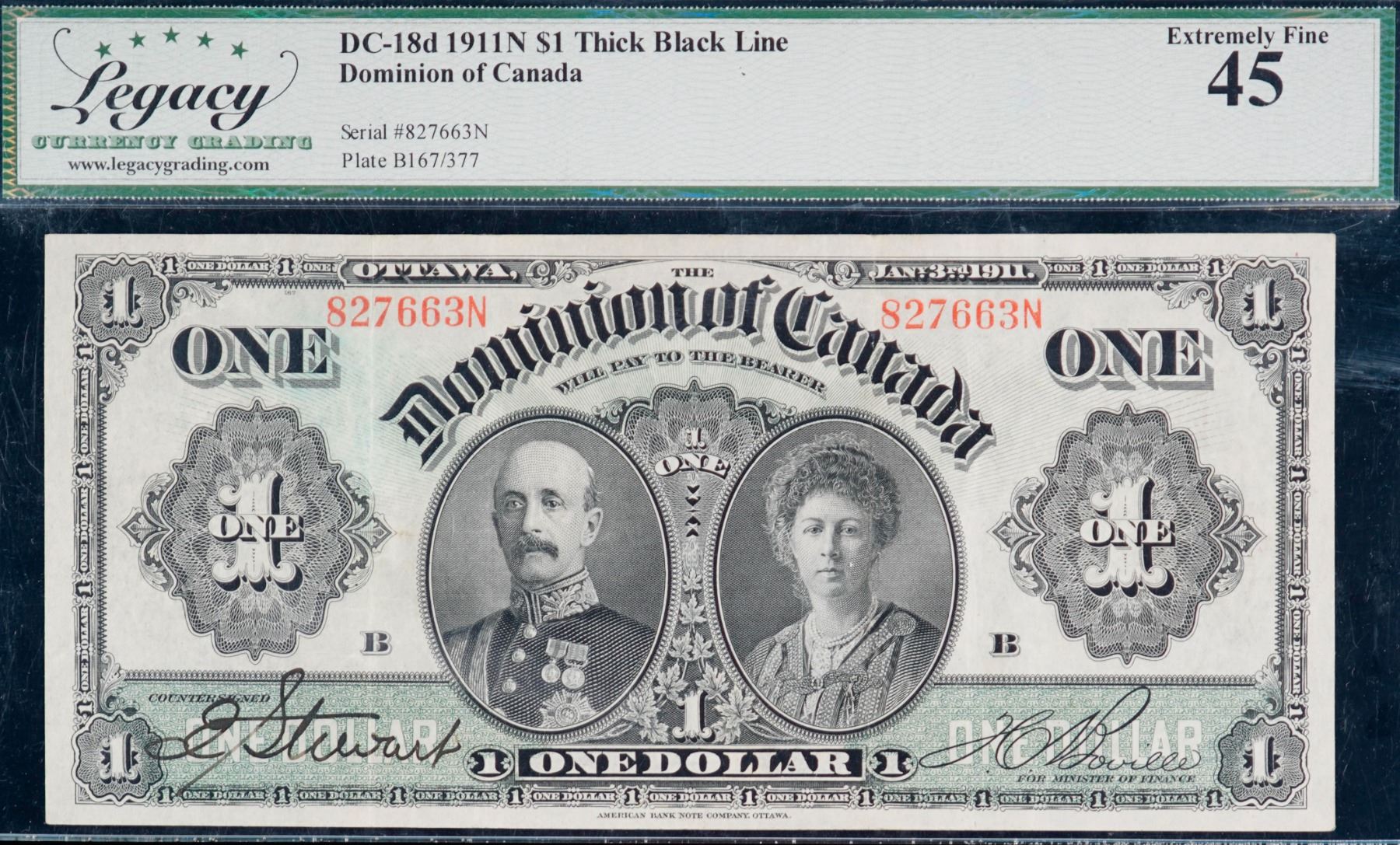 1911 $1 DC-18d #827663N Legacy Choice Extra Fine-45. A very nice and bright example.