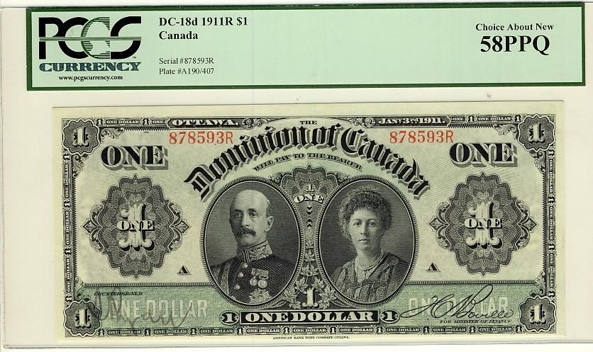 1911 $1 DC-18d #878593R PCGS AU58PPQ. Looks Choice.