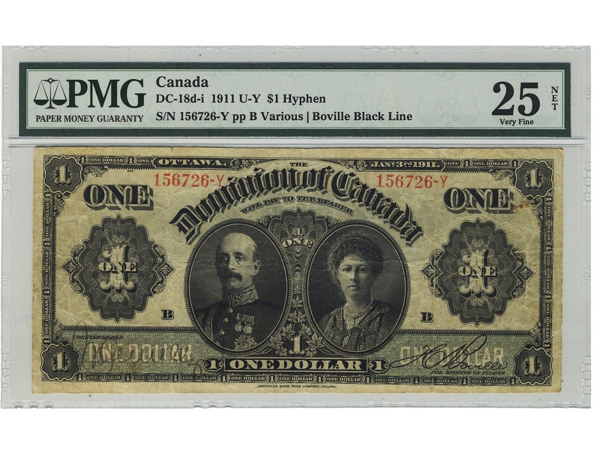 1911 $1 DC-18d-i. #156726Y PMG VF25 Net. Foreign substance.