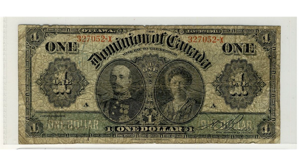 1911 $1 DC-18d-i #327052-X VG8 for grade.