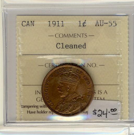 1911 1¢ ICCS AU55 Cln