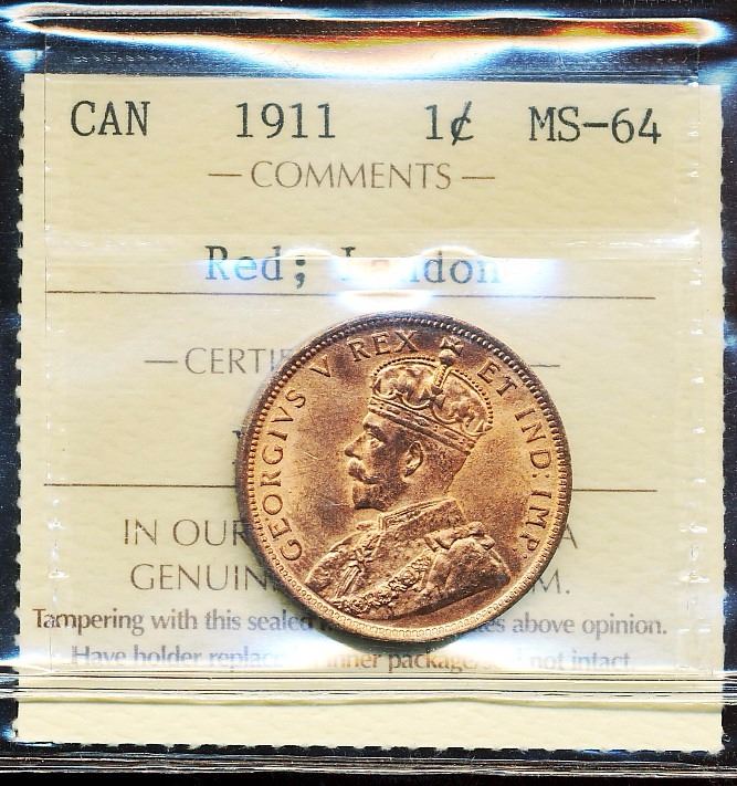 1911 1¢ ICCS MS64RD.