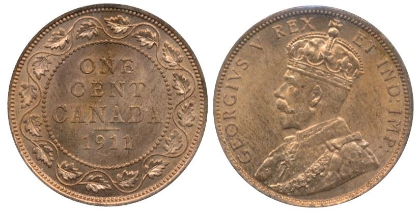 1911 1¢ ICCS MS65 RED. 90% Gold-red. Excellent surfaces.