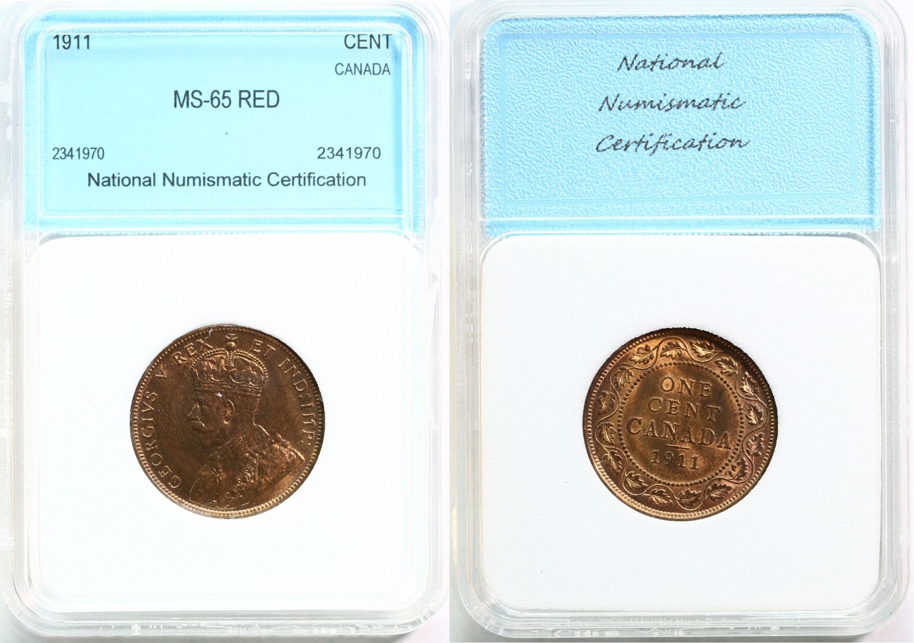 1911 1¢ Uncirculated or better (NNC MS-65 Red)