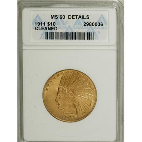 1911 $10 --Cleaned--ANACS. MS60 Details. NGC Census