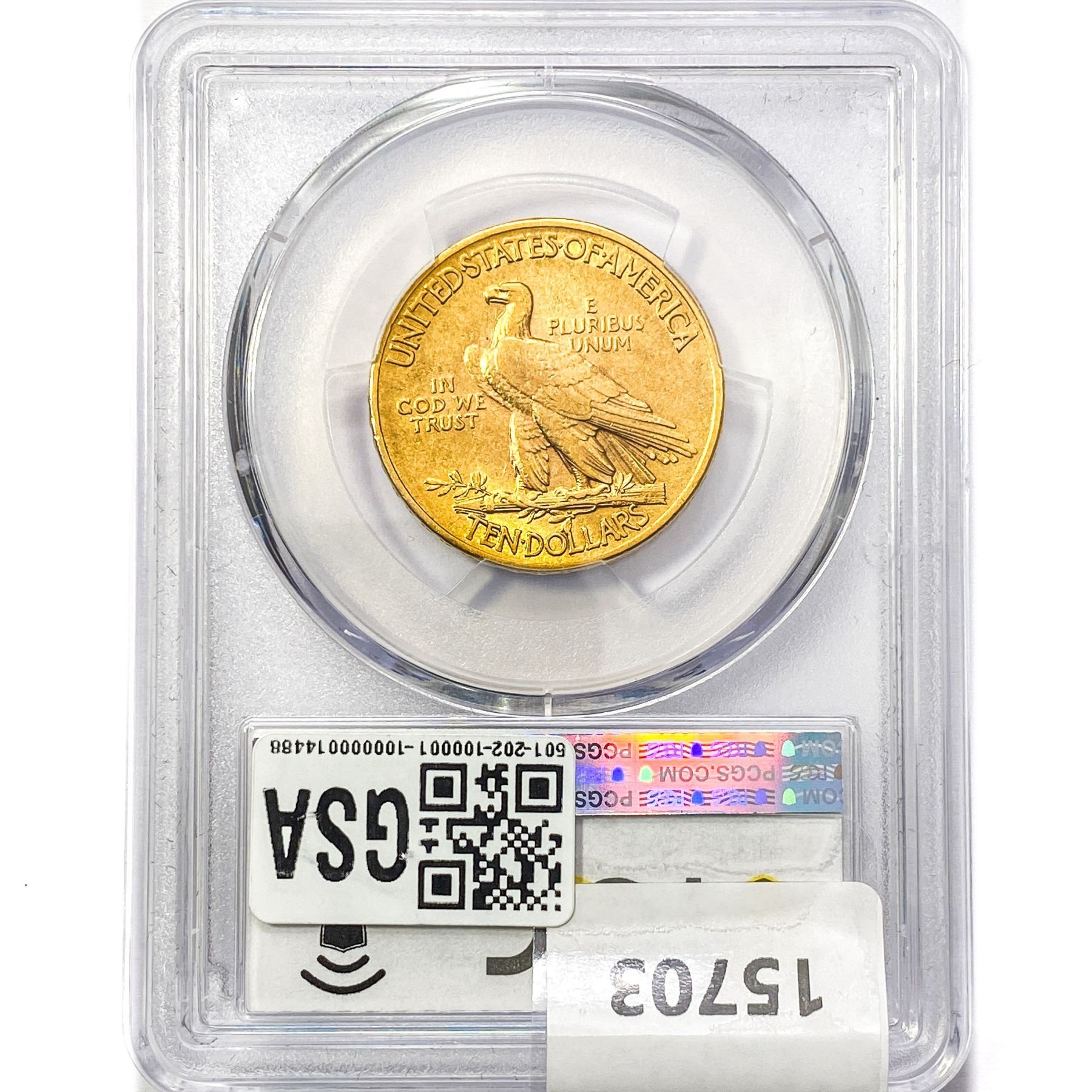 f. Notes sold referencing a third-party grading service are sold “AS IS” without any express or implied warranty, except for guarantee by GSA that they are genuine. Grading, condition or other attributes of any Product may have a material effect on its value and the opinion of others, including third-party grading services such as PCGS Currency and PMG may differ with that of GSA. GSA shall not be bound by any prior or subsequent opinion, determination, or certification by any grading service. Bidders specifically waive any claim to right of return of any Product because of the opinion, determination, or certification, or lack thereof, by any grading service. Certain warranties may be available from the grading services and Bidders are referred to them for further details: Paper Money Guaranty (PMG), PO Box 4711, Sarasota, FL 34230; PCGS Currency, PO Box 10470, Peoria, IL 61612-0470; PCGS Gold Shield, PO Box 9458, Newport Beach, CA 92658. Third-party graded notes are not returnable for any reason whatsoever.