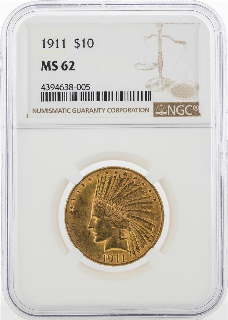 One 1911 $10 Indian Head Eagle Gold Coin NGC MS62. NGC Certified.