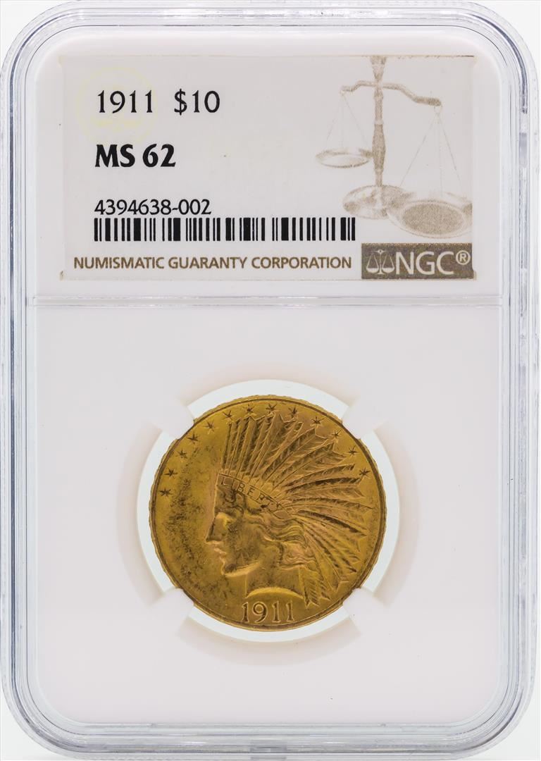 One 1911 $10 Indian Head Eagle Gold Coin NGC MS62. NGC Certified.