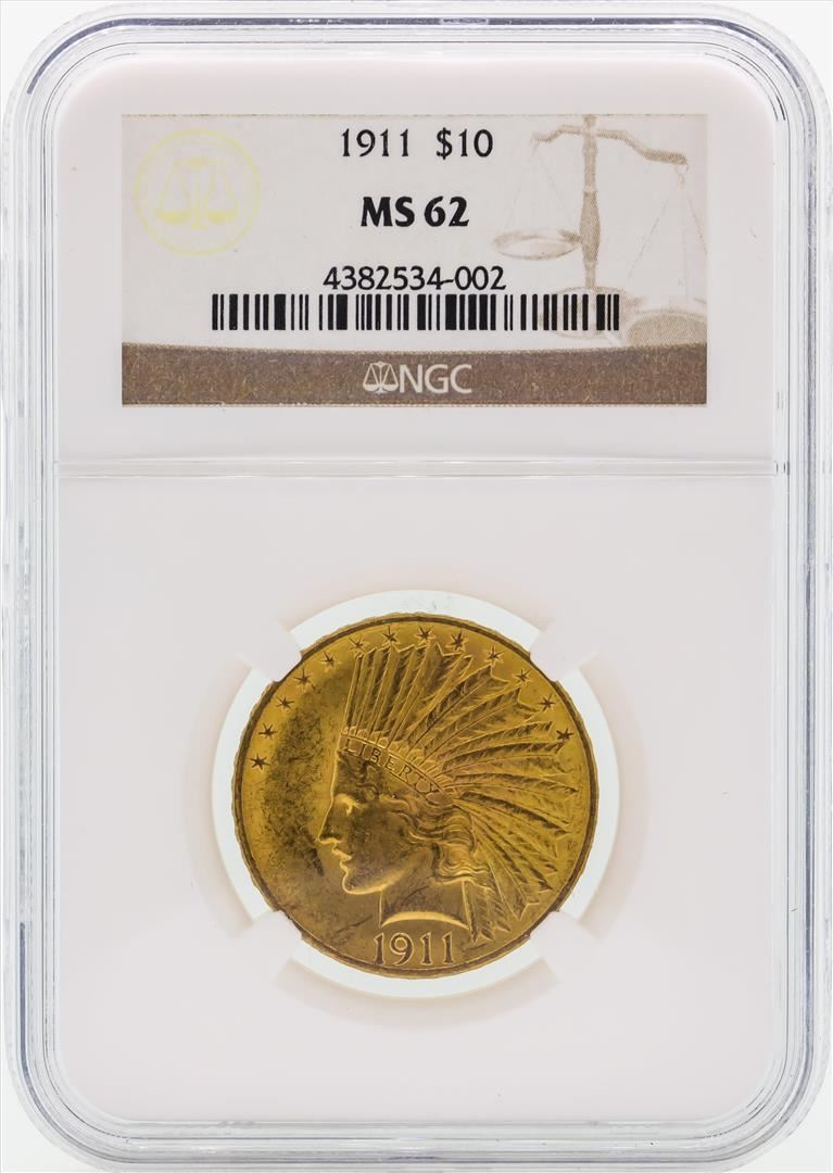 One 1911 $10 Indian Head Eagle Gold Coin NGC MS62. NGC Certified.