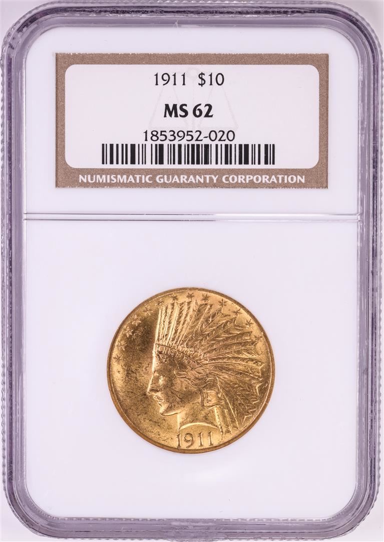One 1911 $10 Indian Head Eagle Gold Coin NGC MS62. NGC Certified.