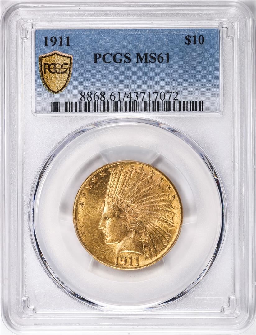 One 1911 $10 Indian Head Eagle Gold Coin PCGS MS61. PCGS Graded.