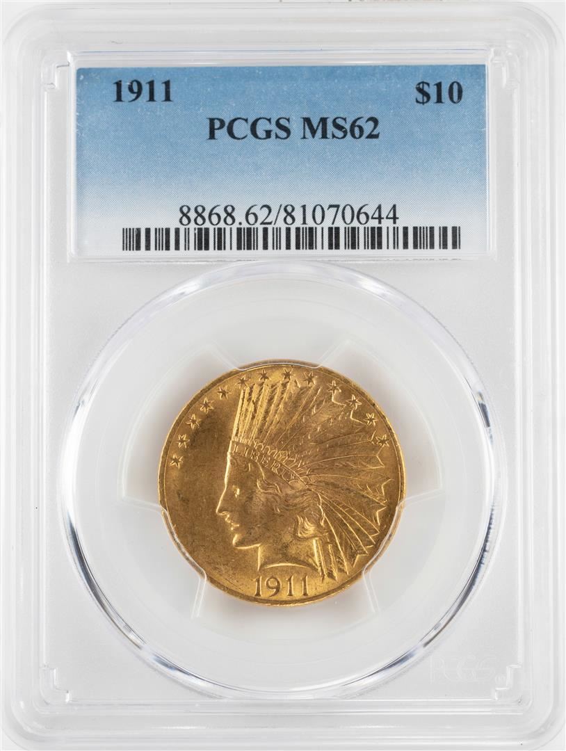 One 1911 $10 Indian Head Eagle Gold Coin PCGS MS62. PCGS Graded.