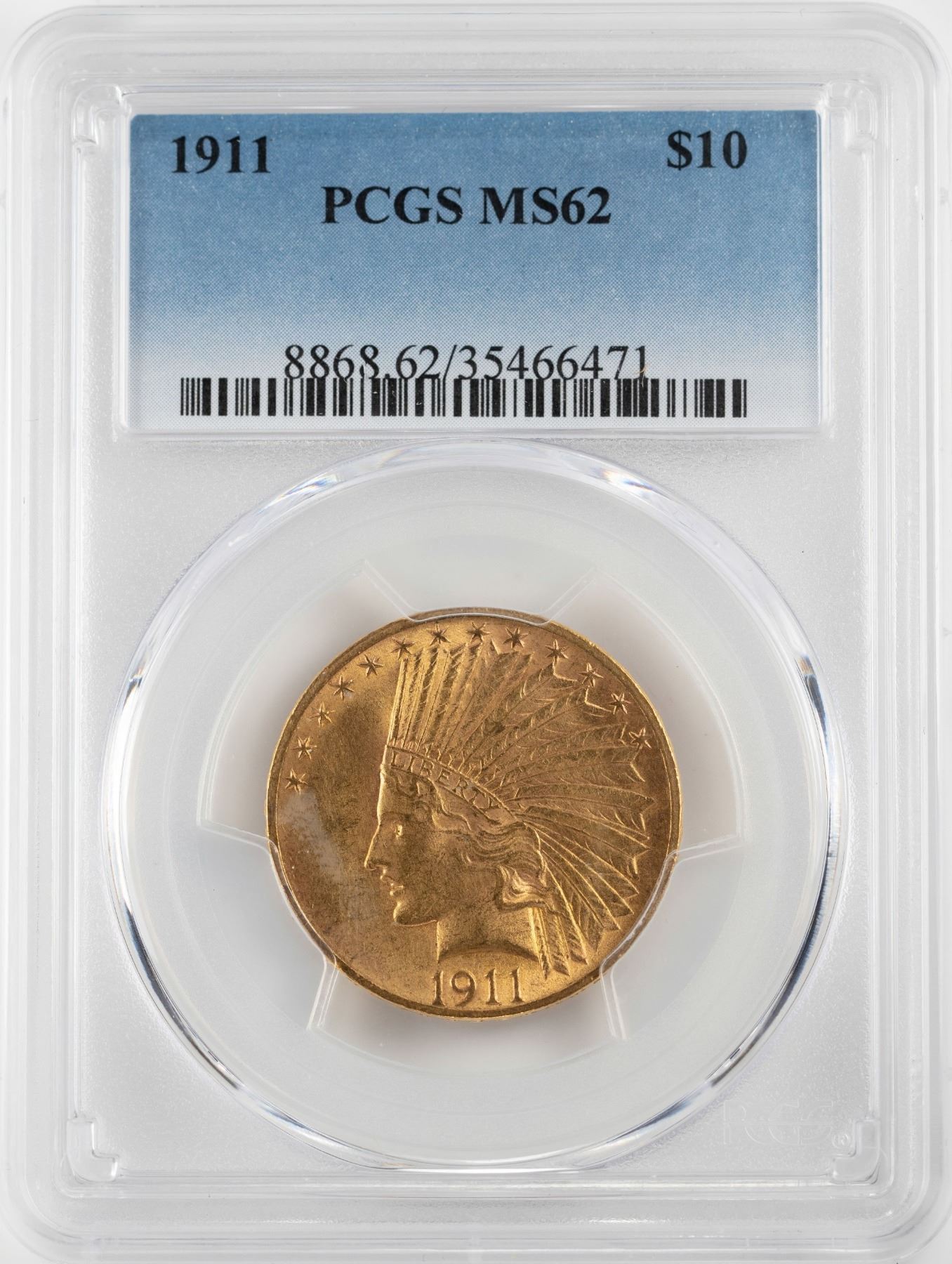 One 1911 $10 Indian Head Eagle Gold Coin PCGS MS62.