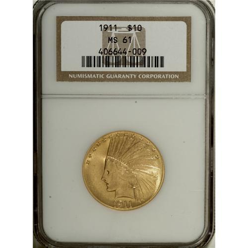 1911 $10 MS61 NGC. NGC Census: (1169/3399). PCGS P
